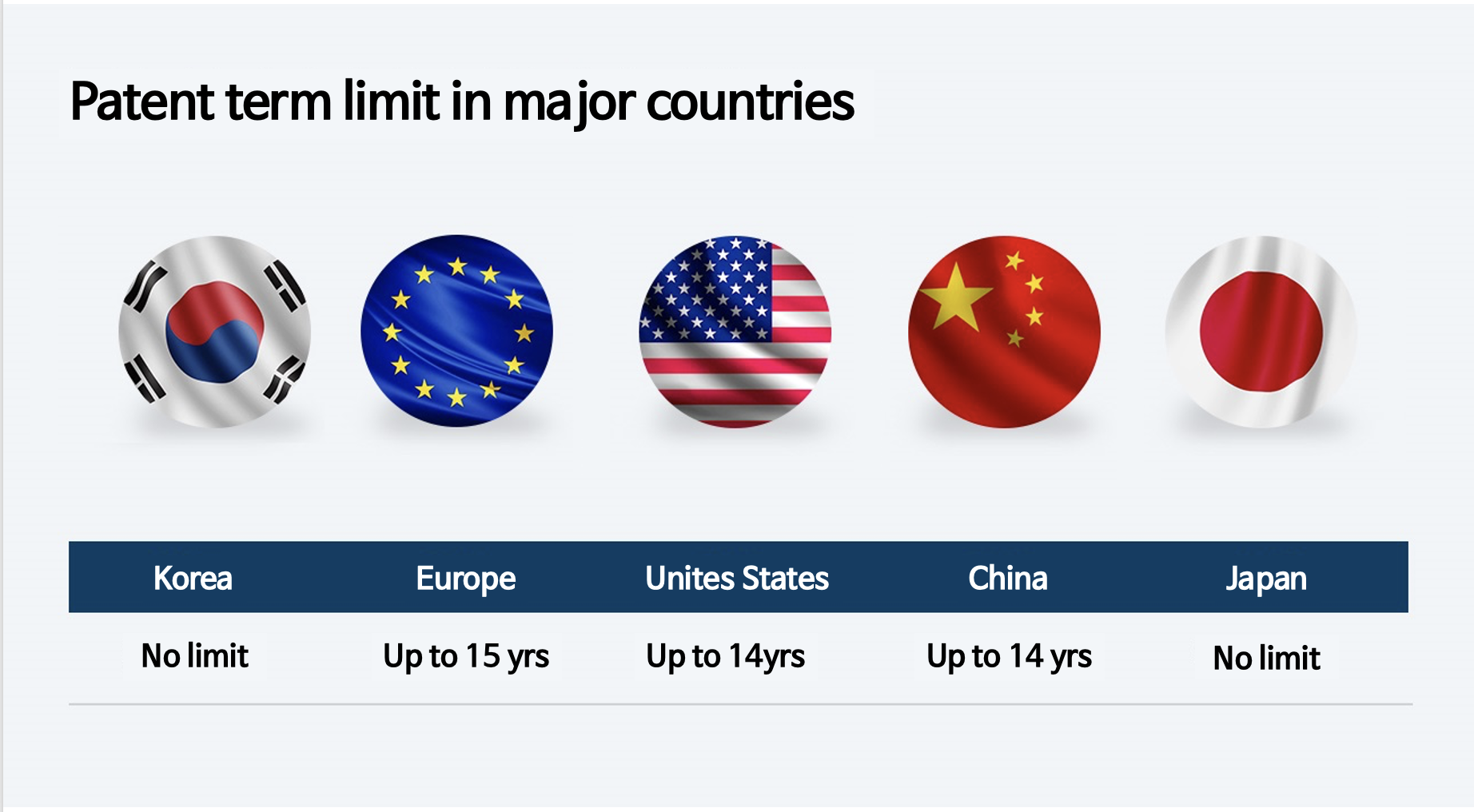 The Korea Intellectual Property Office promoted the introduction of a cap on the effective patent term for equity and international harmonization with other countries.