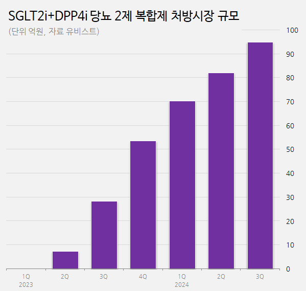 'SGLT2i+DPP4i combination drugs' generated KRW 9.5B in Q3…Will it surpass yearly KRW 30B? According to a pharmaceutical market research firm UBIST on October 2, two-drug combination drugs with SGLT-2 inhibitor and DPP-4 inhibitor generated KRW 9.5 billion in net sales in Q3 2024.