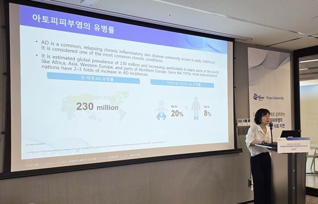 Professor Ahn Ji Young, affiliated with the Department of Dermatology at the National Medical Center, and Professor Jang Yong Hyun, affiliated with the Department of Dermatology at Kyungpook National University, discussed the matter while sharing Korea's latest treatment trend of severe atopic dermatitis during the '2024 Pfizer Press University.' Regarding the necessity of switching between atopic dermatitis treatment, Ahn stressed the nature of the disease, which accompanies various factors.