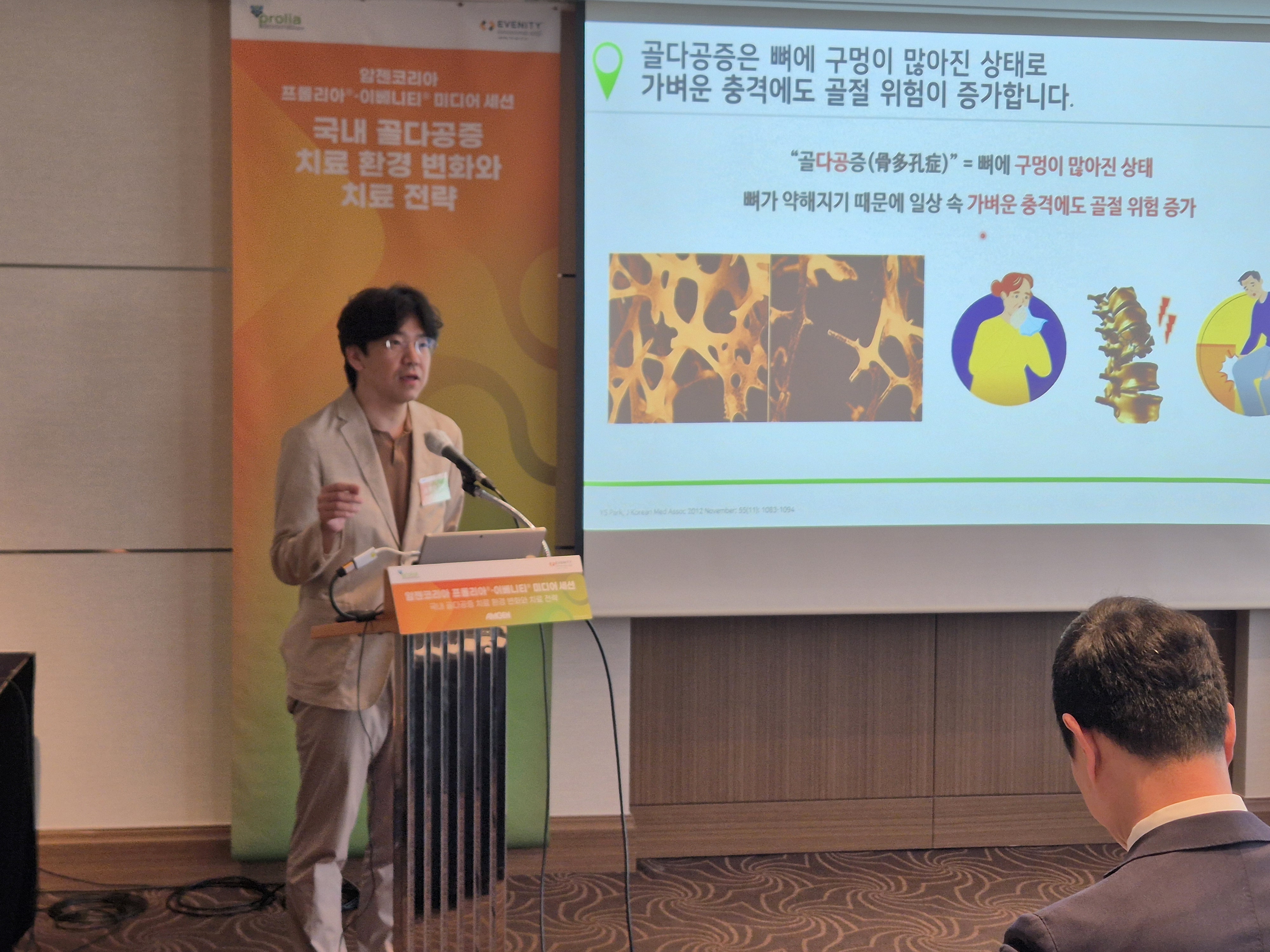 19, Amgen Korea held a media session at the Lotte Hotel in Jung-gu, Seoul, to introduce its treatment strategies in response to the changing osteoporosis treatment environment in Korea.