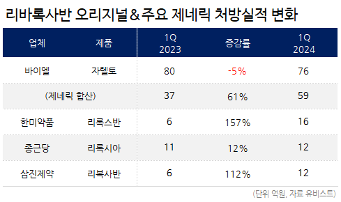 According to Q1 prescription performance report, Hanmi Pharm’s 'Riroxban' generated KRW 1.6 billion, CKD Pharm’s 'Riroxia' generated KRW 1.2 billion, and Samjin Pharmaceutical’s 'Rivoxaban' generated KRW 1.2 billion.