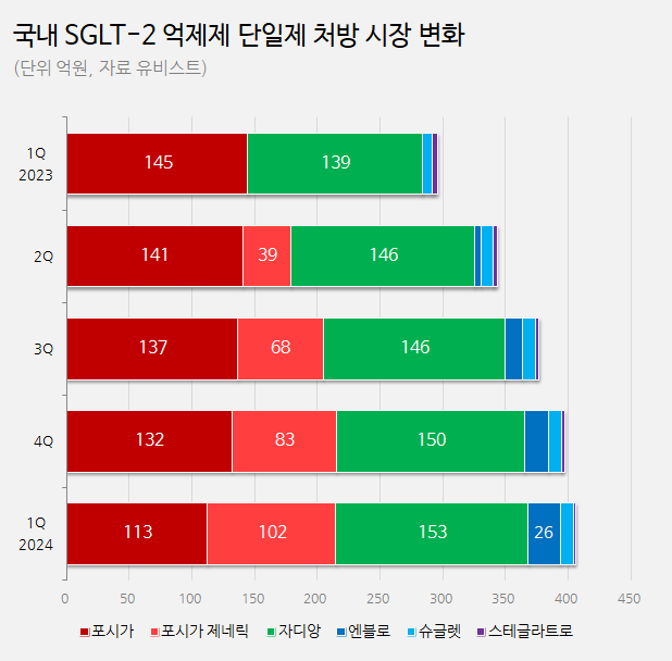 In Q1 this year, Forxiga generics expanded its market share to 25% in the entire SGLT-2 inhibitor monotherapy market (KRW 40.6 billion).