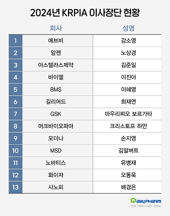 KRPIA’s board of directors (BOD) list shows that new members have joined the board following many CEO transfers within the multinational pharmaceutical companies in one to two years.