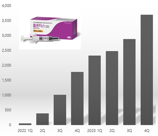 Hanmi’s Rolontis generated 11.4 billion won in sales last year, expanding three times compared to its 2022 sales of 3.2 billion won.