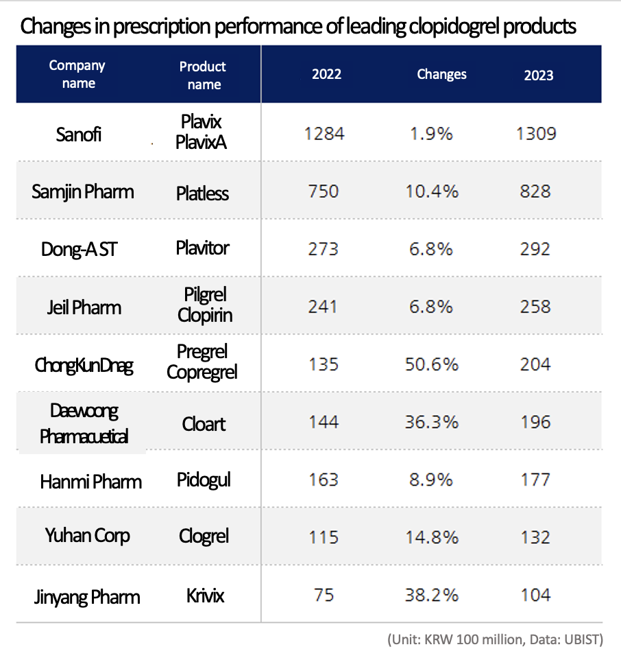 In fact, prescription sales of Plavix have grown annually at a growth rate of 7.2% for 4 years, from KRW 91.4 billion in 2018 to KRW 128.4 billion in 2022, but only rose 2% last year.