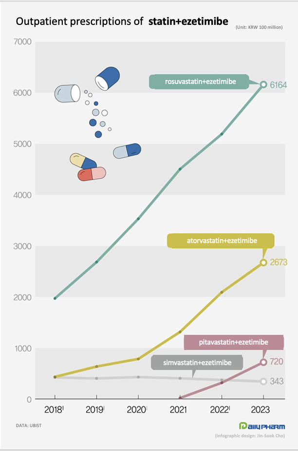 The rosuvastatin-ezetimibe combination drove market growth, posting more than KRW 600 billion in sales, while the atorvastatin-ezetimibe combination expanded more than threefold after the arrival of its generics.