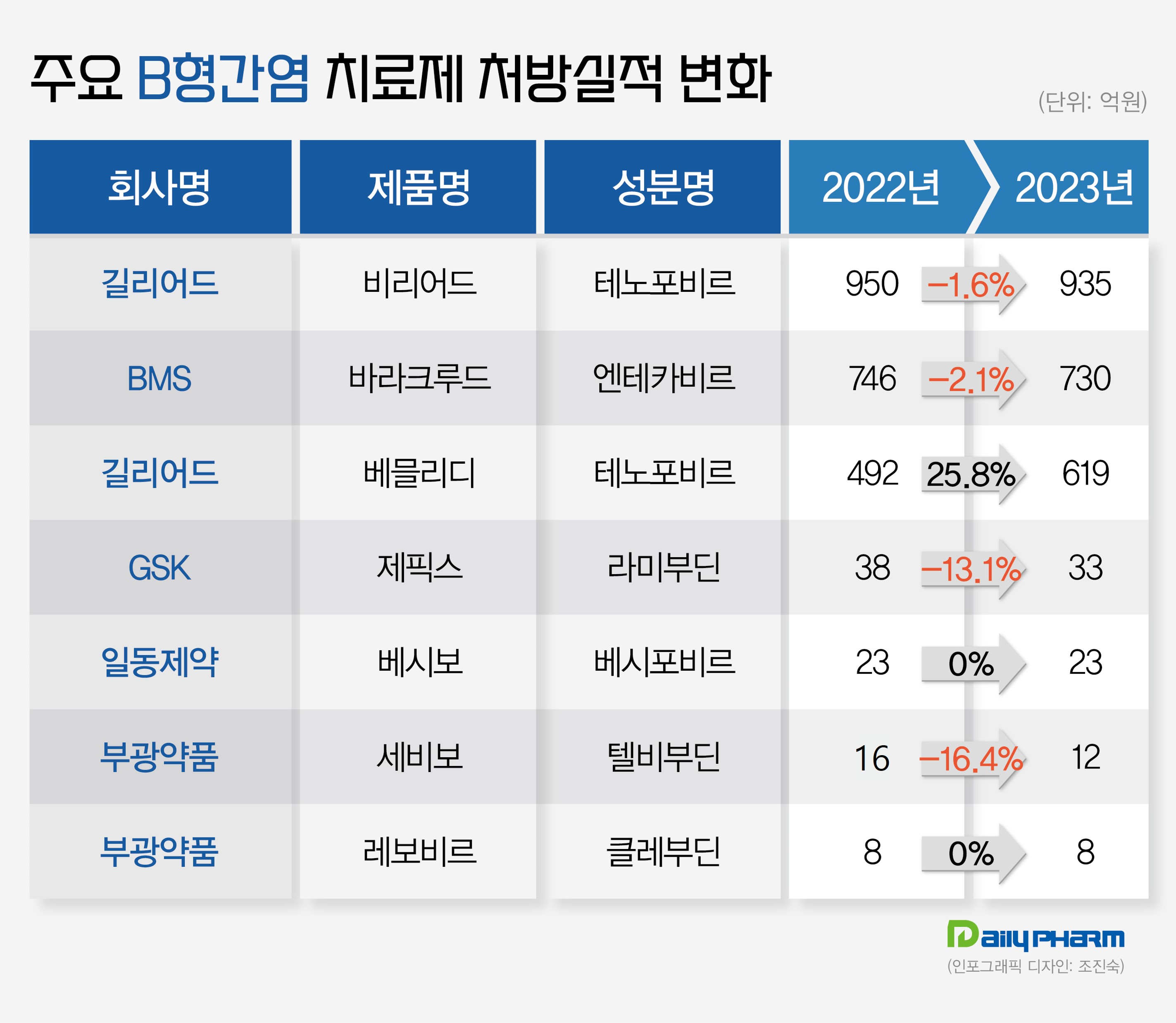 Prescription sales for GSK's Zeffix decreased by 13.1% from 3.8 billion won in 2022 to 3.3 billion won last year.