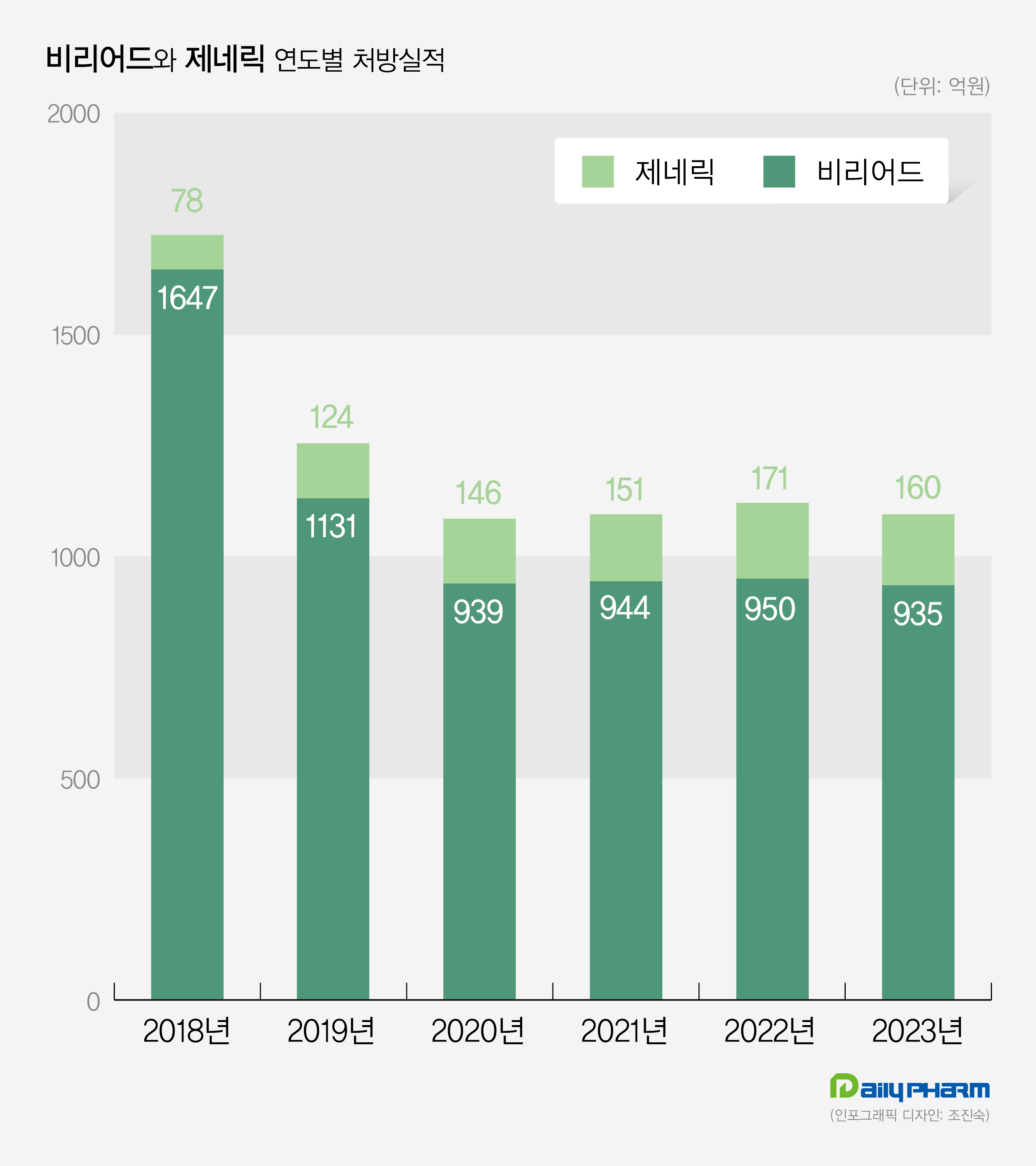 (Unit: KRW 100 million) Prescription sales for generic version of Viread decreased by 6.4% from 17.1 billion won in 2022 to 16 billion won last year.