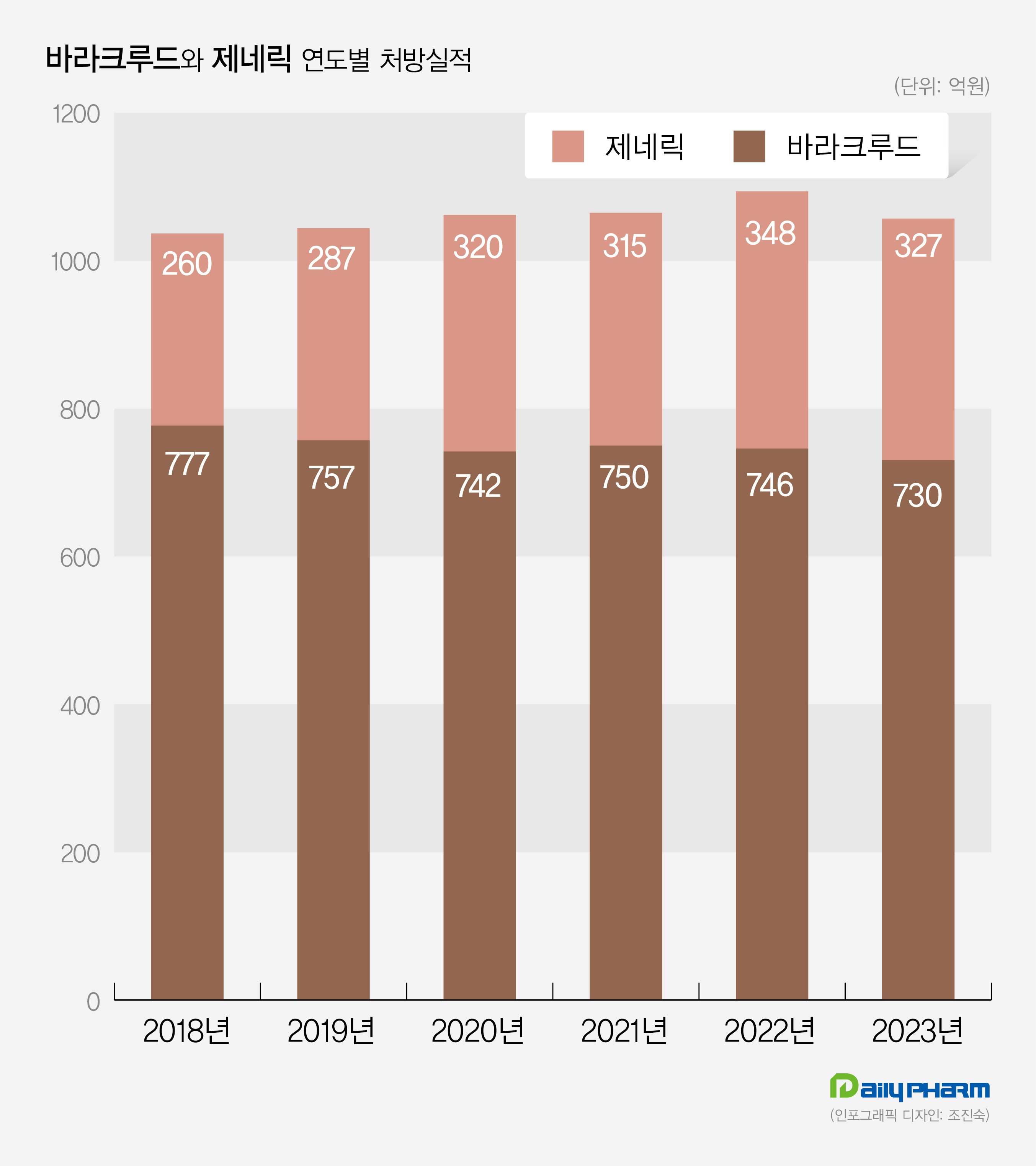Baraclude recorded prescription sales of 73 billion won last year, indicating a 2.1% decrease from 2022.