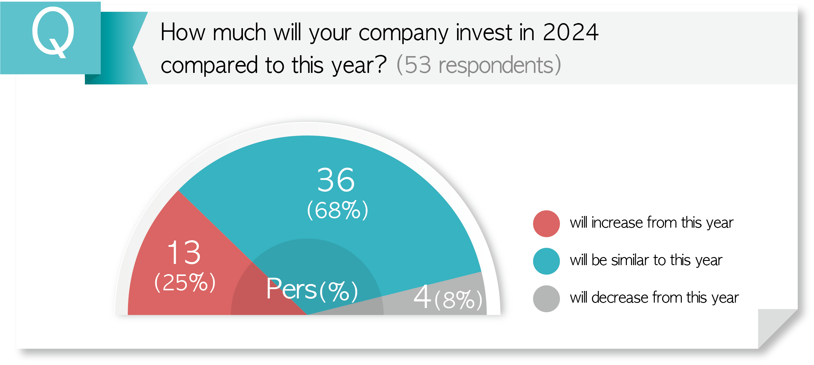 68% (36 out of 53) said they plan to keep the scale of investment at a similar level to last year, while 8% (4) said they plan to reduce it.