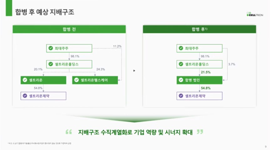 After the merger, there will be a minor change in the ownership structure of the Celltrion Group.