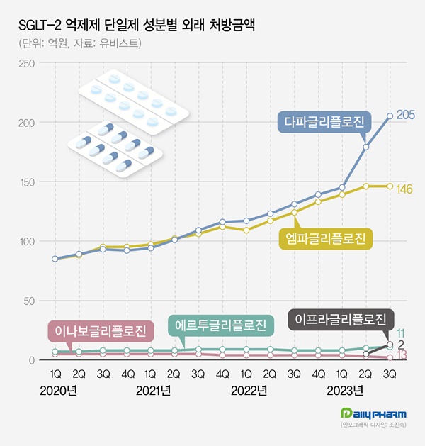 In Q3 of this year, SGLT-2 inhibitors monotherapy achieved outpatient prescription sales of 37.7 billion won.