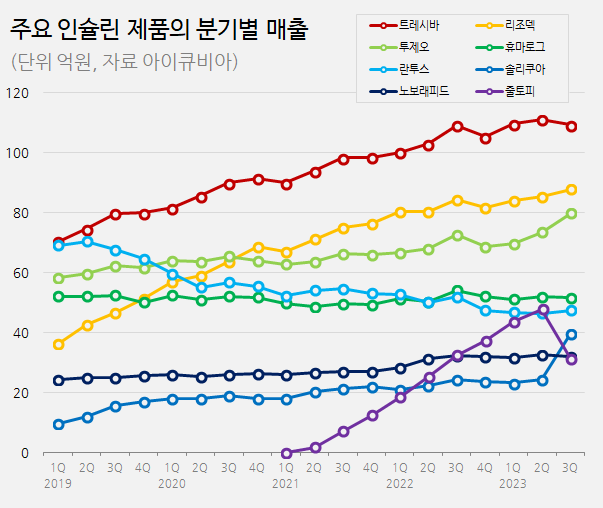 In the case of Xultophy, its sales, which had surged to KRW 4.8 billion in Q2 fell to KRW 3.1 billion in Q3.