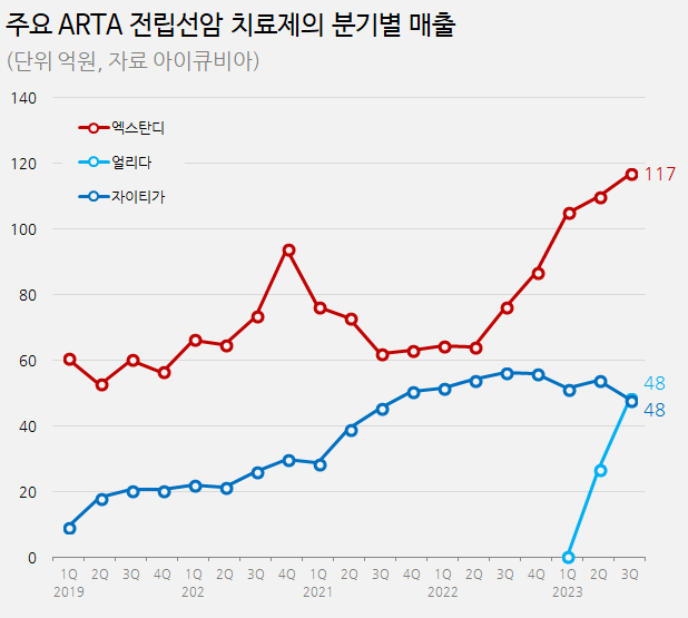 Following the listing, Erleada generated sales of KRW 2.7 billion in the second quarter and increased to KRW 4.8 billion in the third quarter, marginally surpassing the sales of Zytiga.