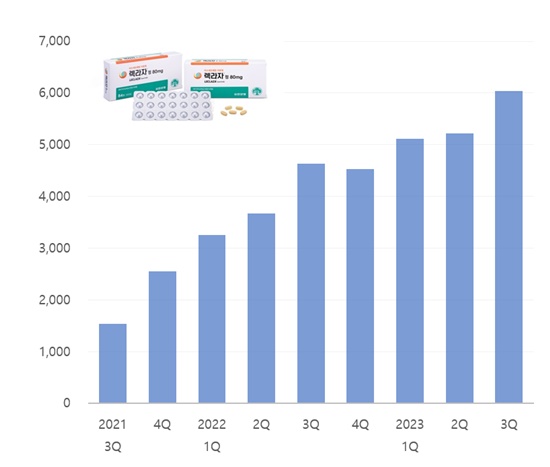 According to the pharmaceutical research institution IQVIA on the 22nd, sales of Leclaza increased by 30.2% YoY to reach KRW 6 billion in Q3 this year.