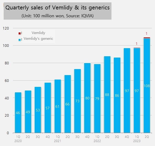 The combined sales of the three Vemlidy generic products in the first half of this year amounted to only 200 million won.