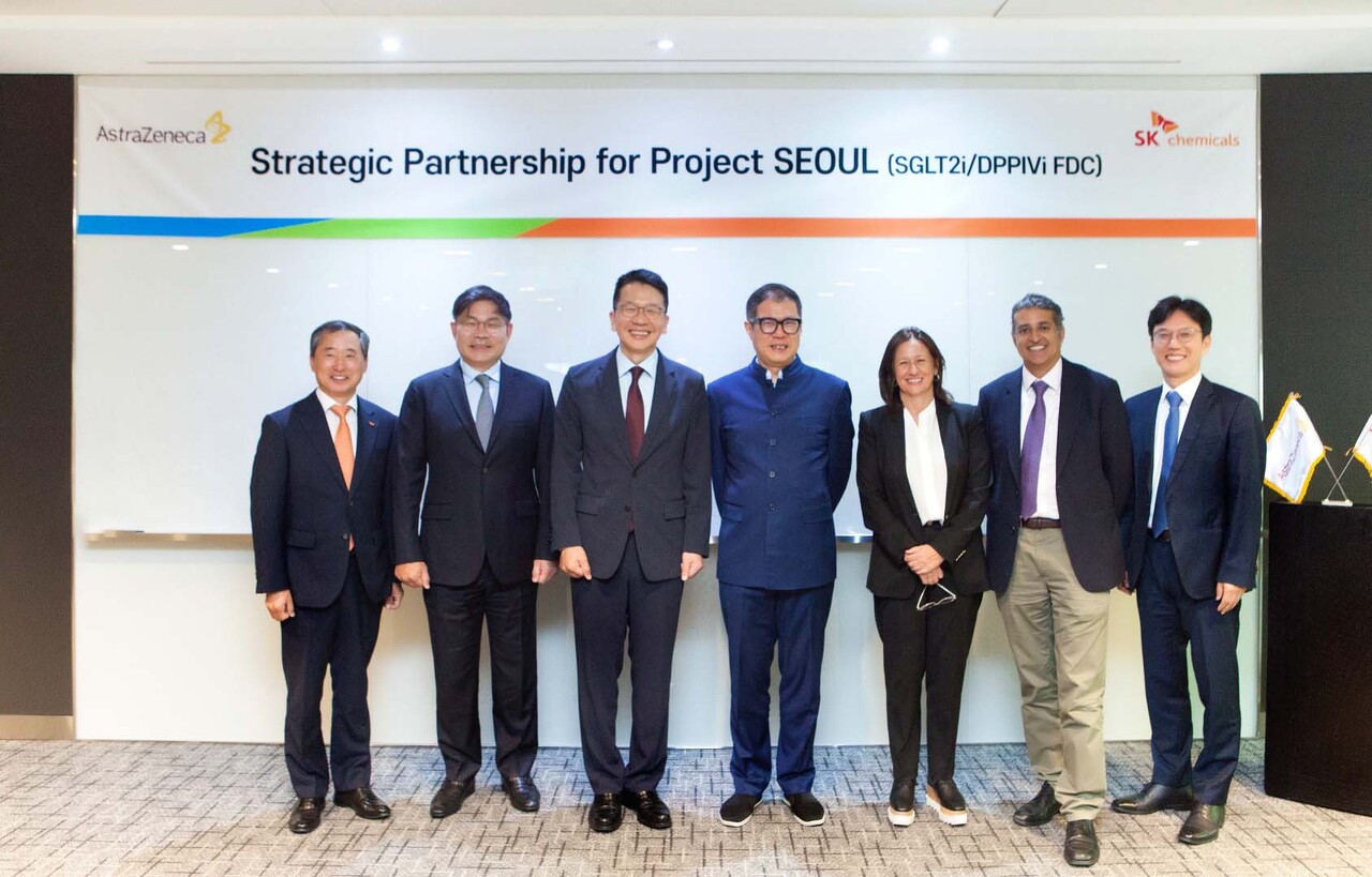 (from the left)Yoon-Ho Kim (CEO, Pharma at SK Chemicals) Jae-Hyun Ahn (President and CEO, SK Chemicals) Choi Chang-won (Vice chairman, Discovery), Leon Wang (Executive Vice President, International and China President AstraZeneca), Sylvia Varela(Vice Presdient, Asia AstraZeneca), Ankush Nandra (Vice President, Finance and Chief Financial Officer International AstraZeneca), Sangpyo Kim ( Country President, AstraZeneca Korea) Both companies are looking forward to the synergistic effect that the collaboration will bring, accentuating their strengths and supplementing their weakness.