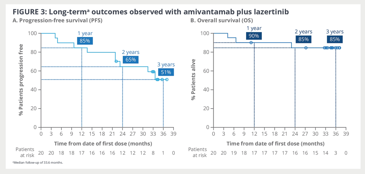 First, the long-term follow-up results of the Phase I CHRYSALIS trial, which used EGFR exon 20 mutation treatment Rybrevant with Leclaza in EGFR-mutated NSCLC, were presented as a poster.