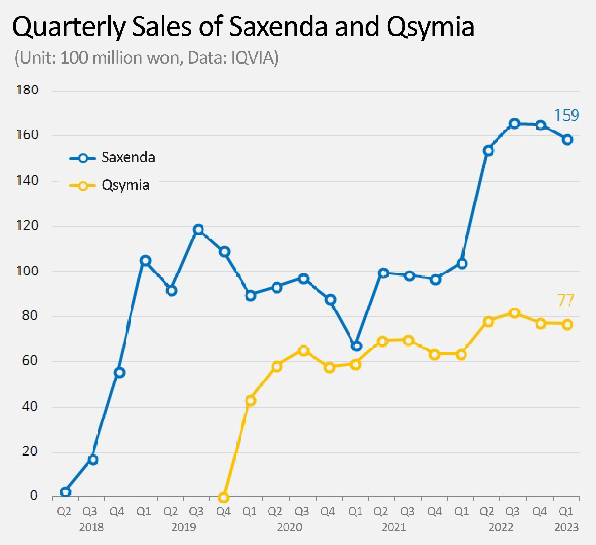 Although Qsymia chased Saxenda's sales up to about 90% with KRW 5.9 billion in the first quarter of 2021, the gap is widening again as the obesity treatment market is recovering.