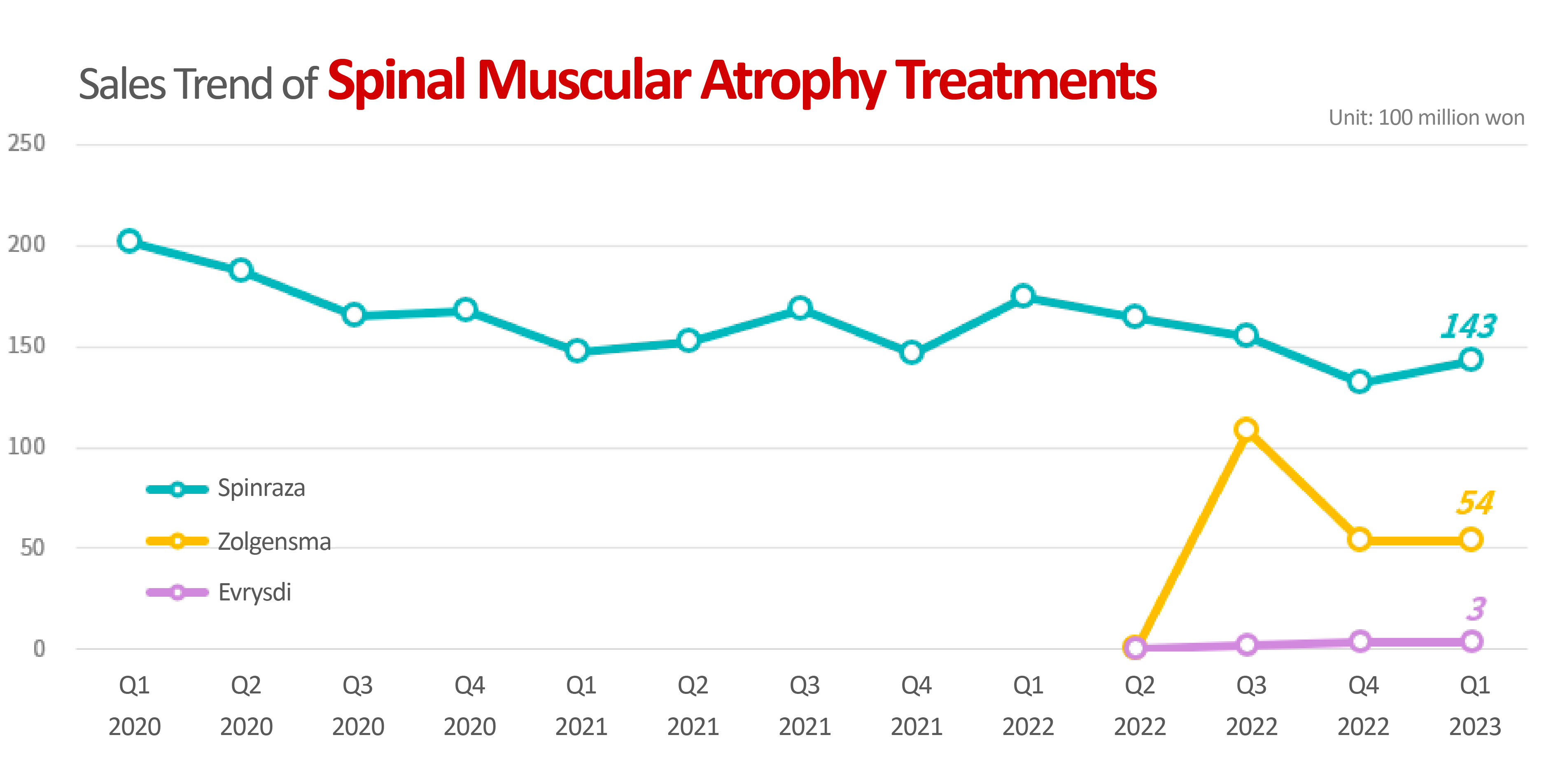 According to the market research institution IQVIA on the 31st, the SMA treatment market in Korea had reached KRW 20 billion in Q1, up 15% YoY.