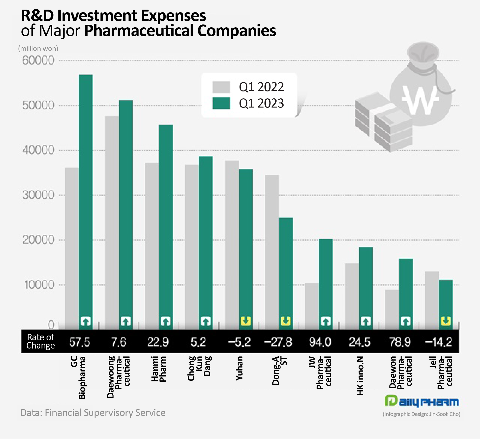 In particular, R&D investments by GC Biopharma and JW Pharmaceuticals soared.