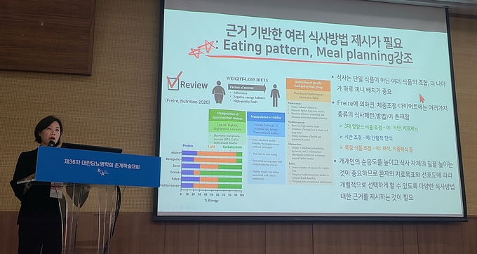 Professor Lim said, "In a 2022 meta-analysis study of 50 RCTs for patients with type 2 diabetes, reducing carbohydrate intake to less than 45% of total energy intake showed improvements in several indicators such as body weight, lipids, and glycated hemoglobin." For each 10% reduction, A1C decreased by 0.2%, FPG by 0.34mmol/L, and body weight by 1.44kg, and all serum lipid indicators were improved.” He said, "Up to 6 months, the rest of the indicators showed a linear decrease in the 40% carbohydrate diet, but triglycerides and LDL cholesterol showed a U-shaped shape." Although they decreased, their weight showed a U-shaped pattern." "Because a meal is a combination of various foods, there can be many patterns in a weight control diet," he said.