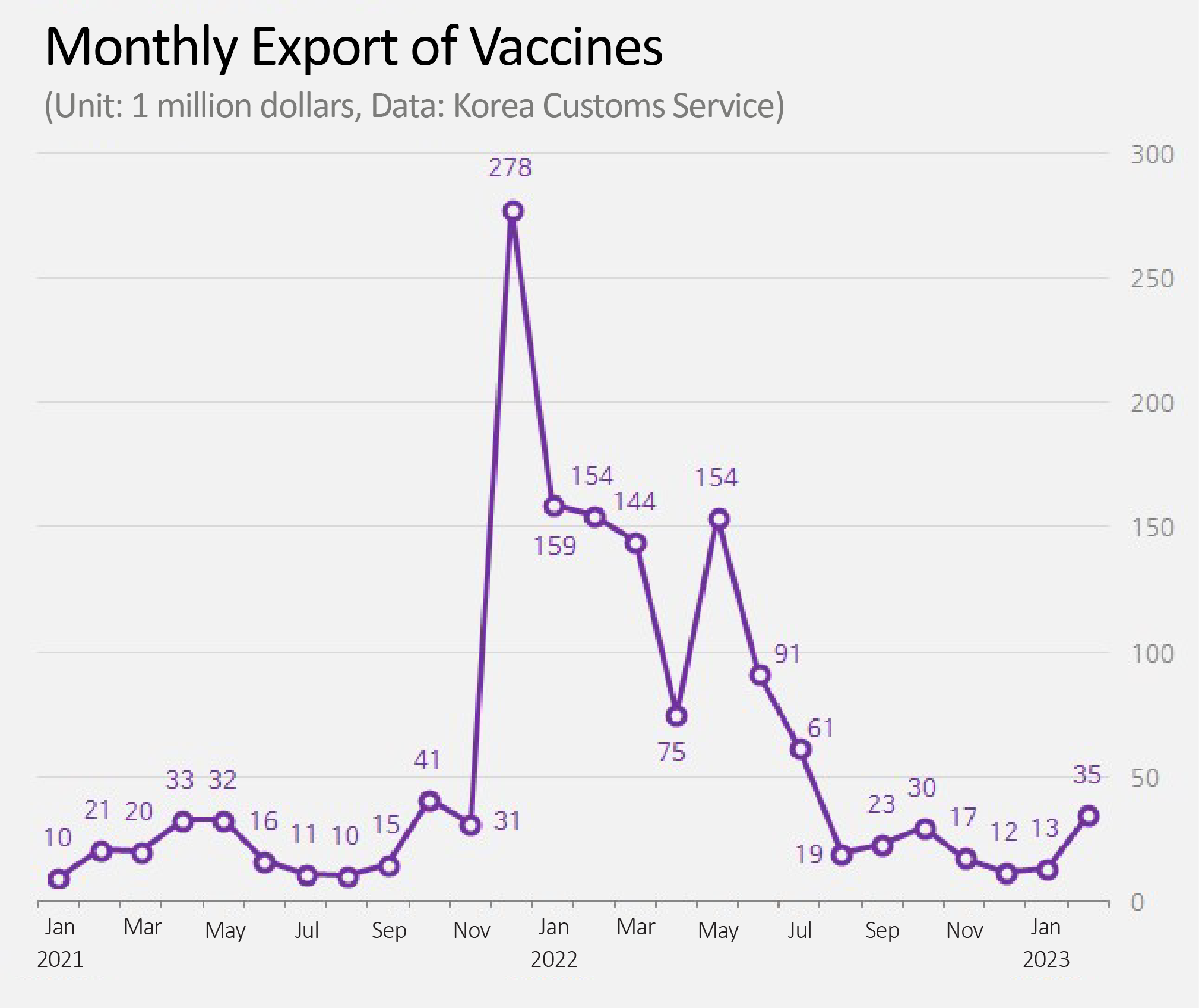 Also, from the end of 2021, exports of Moderna and Novavax vaccines that were manufactured in Korea began in earnest and contributed to the increase in exports.