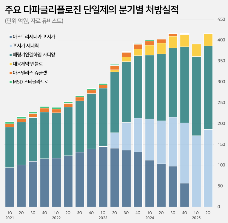In Q1, with Forxiga completely withdrawn, Dapa N recorded KRW 2.3 billion in prescription sales, surpassing Boryung's Trudapa (KRW 1.3 billion) to take the lead.