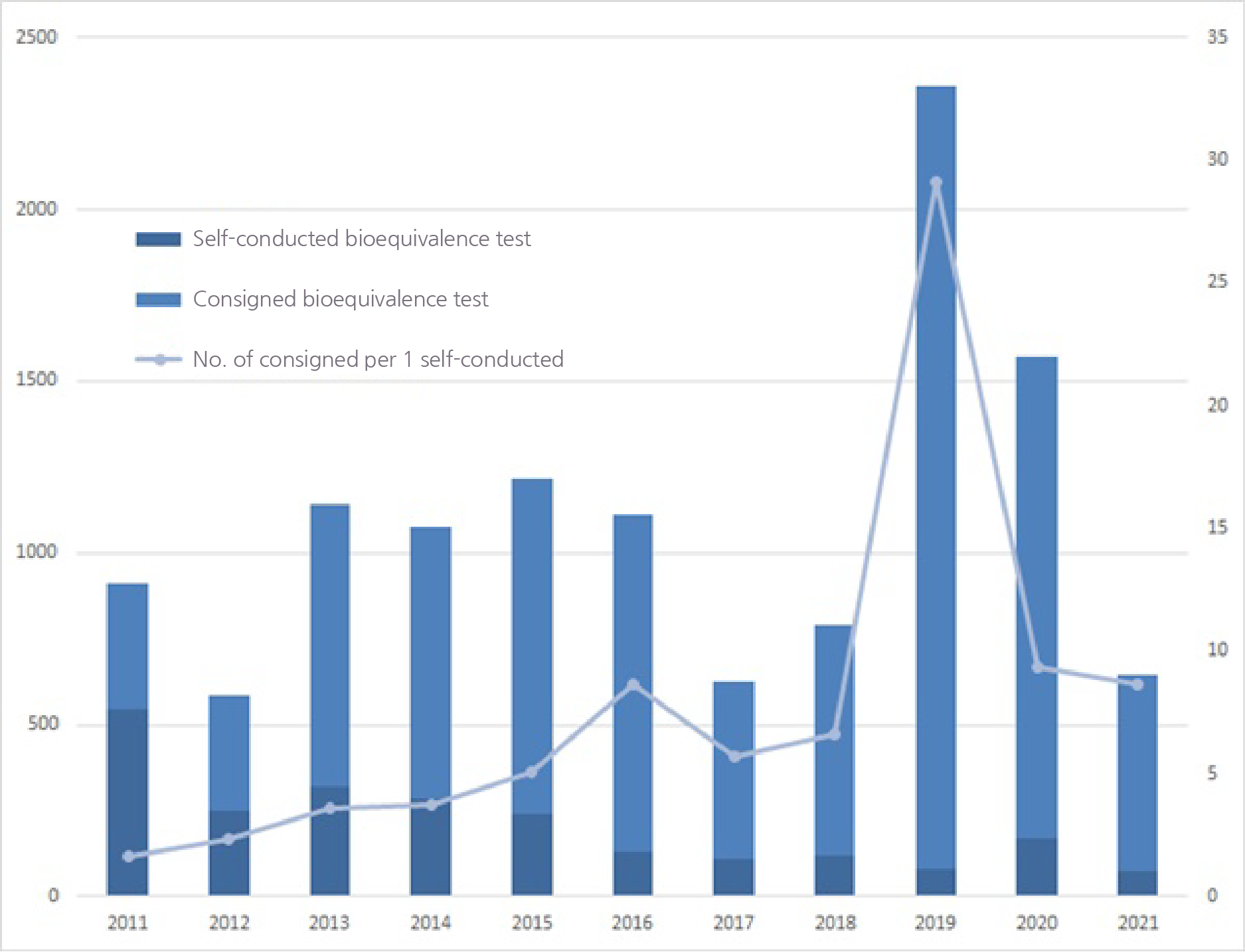 In 2019 and 2020, the number has been 29 and 9.4 drugs per bioequivalent test each.