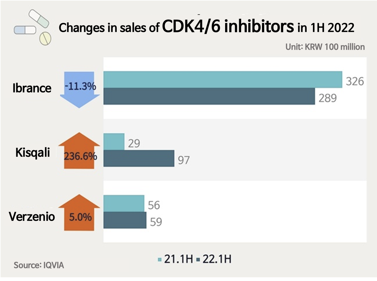 According to the market research institution IQVIA, the domestic market size for CDK 4/6 inhibitors in 1H this year was ₩44.5 billion, an 8.4% increase from the ₩41.1 billion of the previous year.