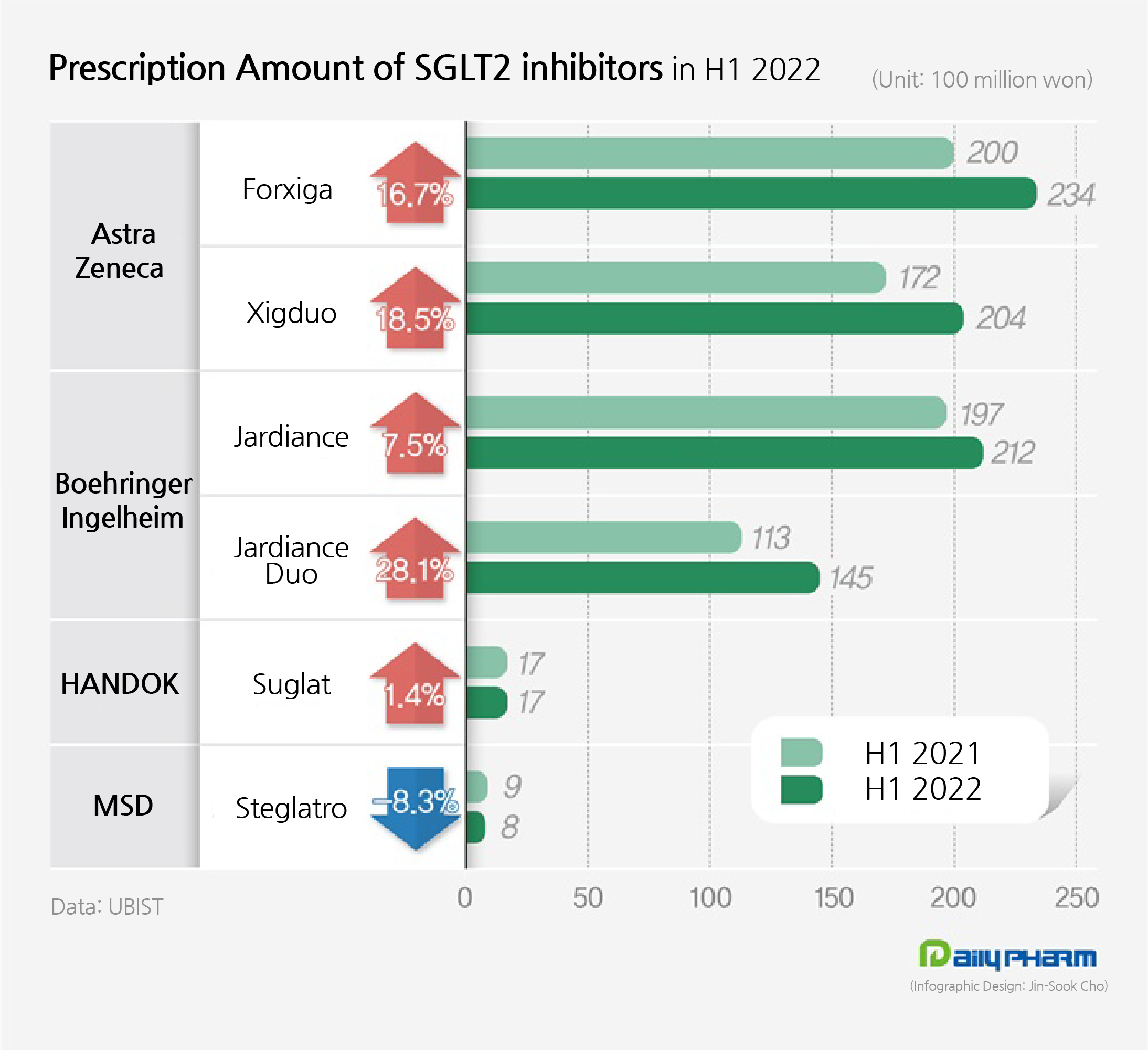 SGLT-2 inhibitors, which were first approved as a type 2 diabetes treatment, expanded into the field of heart failure and made over ₩80 billion in prescriptions in the first half of the year.