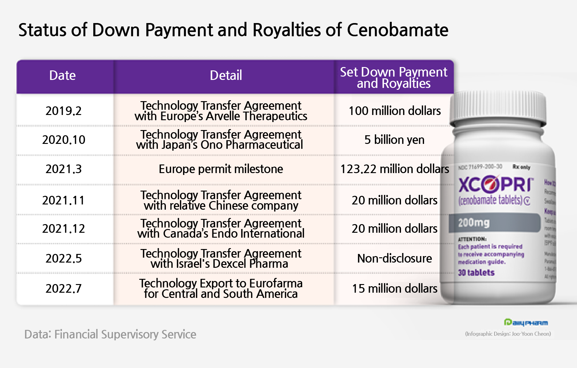 SK Biopharmaceutical’s cash inflow from upfront payments and further milestones from the technology transfer of cenobamate is $278.22 million and ¥5 billion.