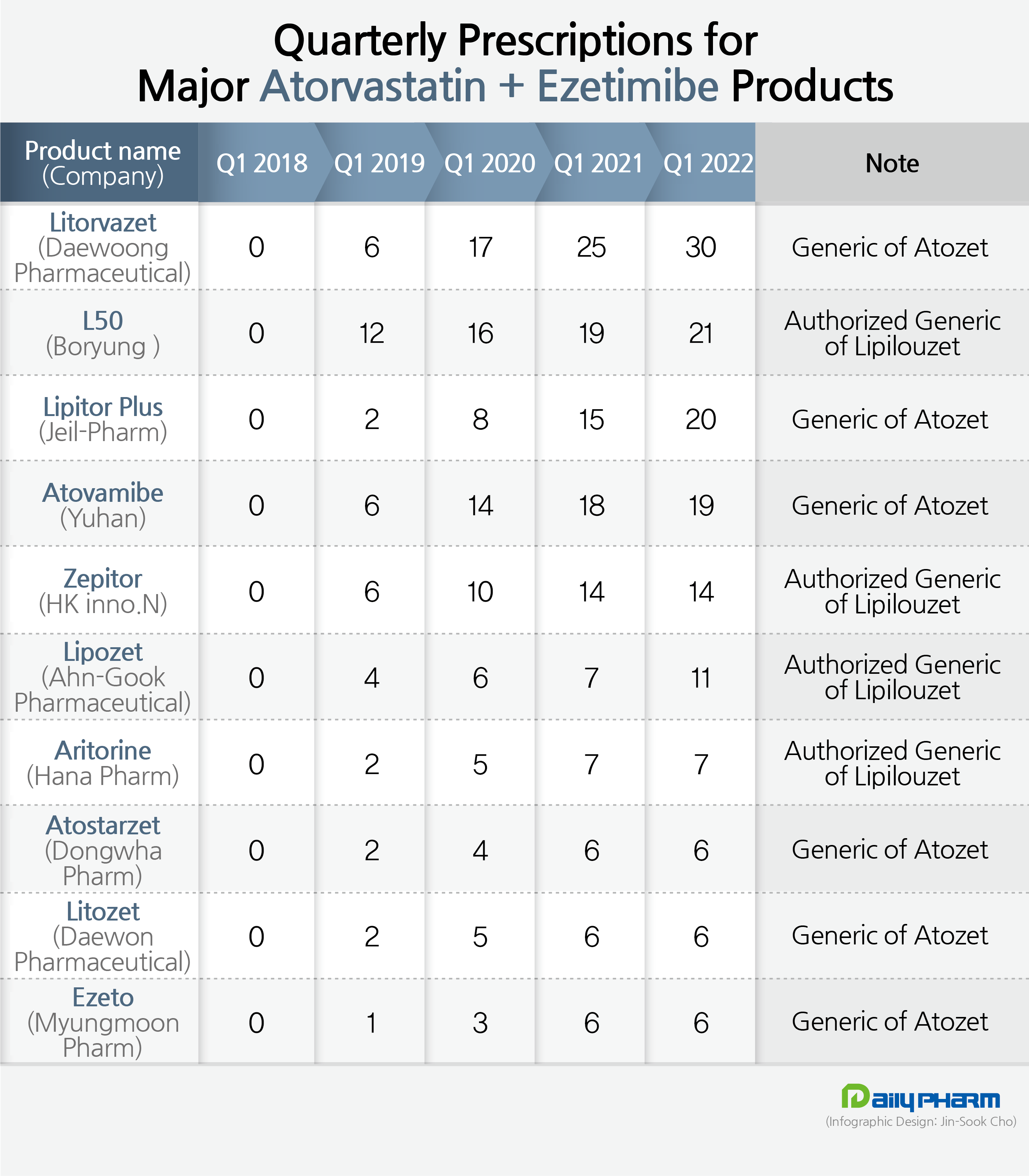 ◆Atozet market increase twofold in 1 year due to entry of generics According to the market research institution UBIST on the 28th, outpatient prescriptions of atorvastatin+ ezetimibe combination drugs recorded ₩44 billion in Q1.
