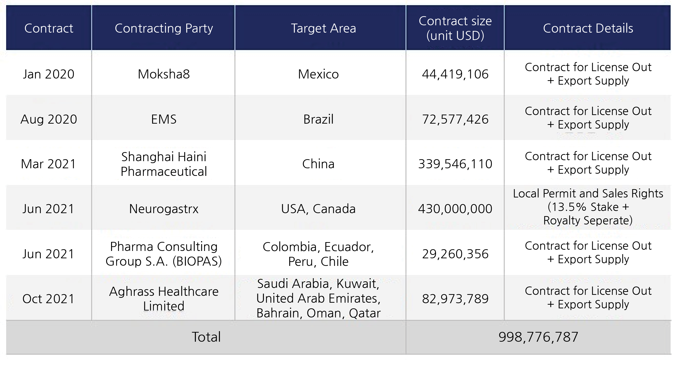 Since 2020, Daewoong Pharmaceutical has signed a series of contracts with North America, Latin America, China, and the Middle East to export its Fexclu technology or its finished drug.