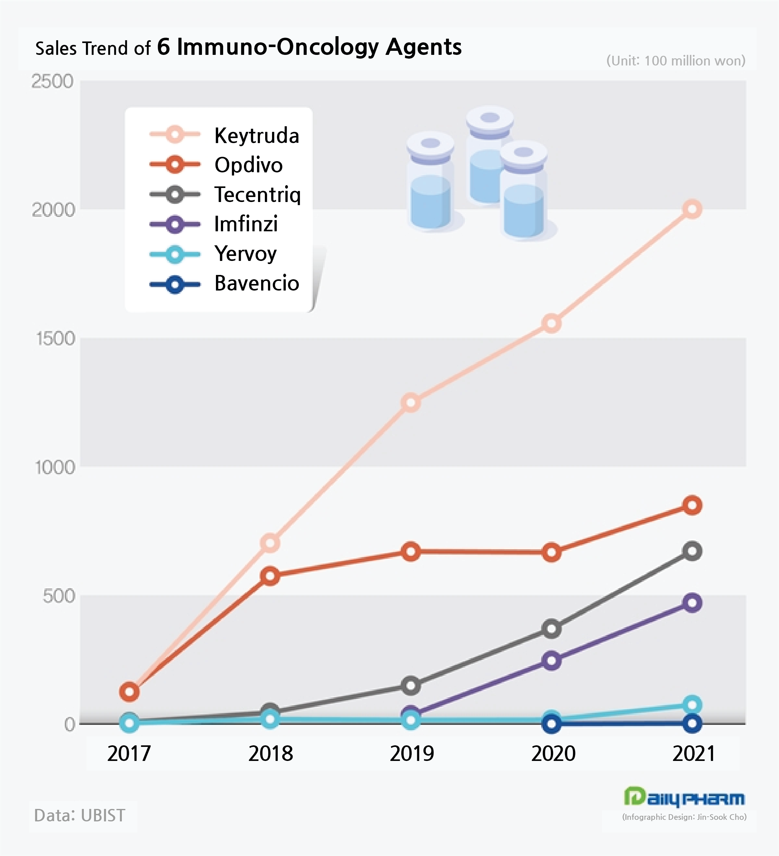 Imfinzi, which was approved in December 2018, also made over ₩50 billion in annual sales only 3 years after its release.