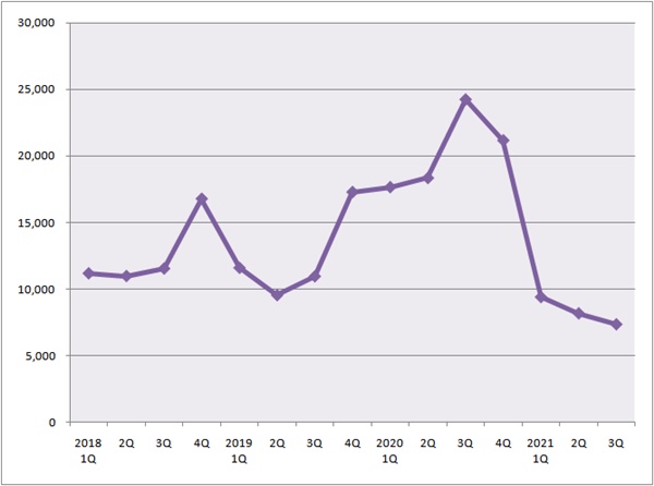 The cumulative sales by Q3 in the market was ₩29 billion, also a 47.3% drop from last year.