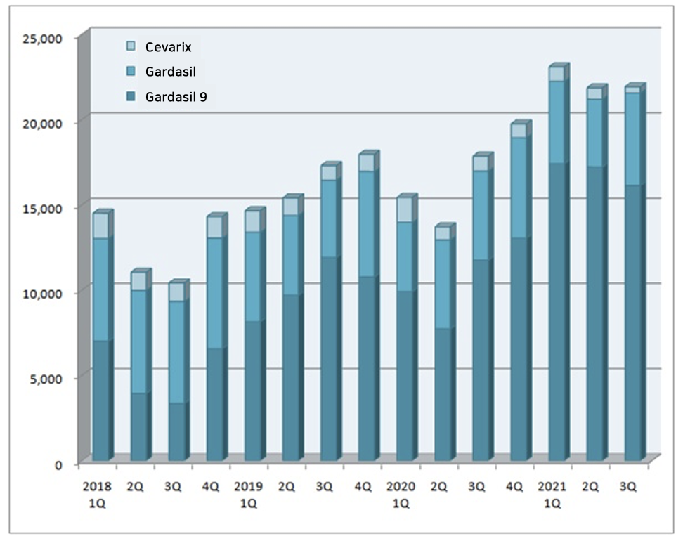 In Q3, the cervical cancer vaccine market increased 22.7% from the previous year and recorded ₩21.9 billion.