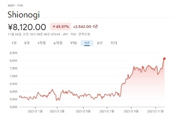 As of the 24th, Shionogi Pharmaceutical's stock price is trading at around 8,100 yen, up nearly 40% from 5,950 yen on July 27, when it announced the launch of phase 1 clinical trial for COVID-19.