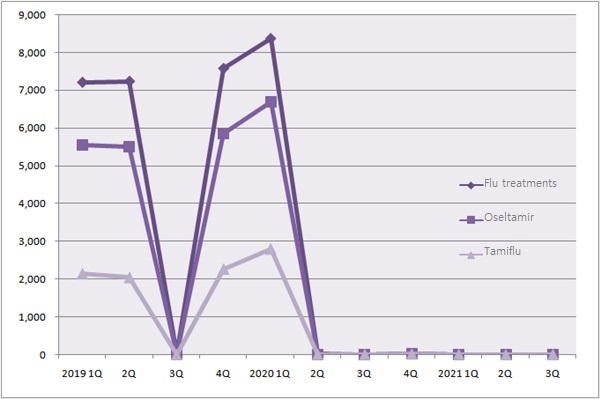 Oseltamivir prescription performance soon becomes sales in the entire flu treatment market.
