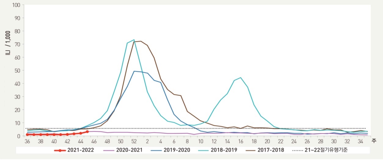 According to The KDCA, the number of suspected flu patients per 1,000 outpatients has never exceeded the epidemic standard of 5.8 this year.