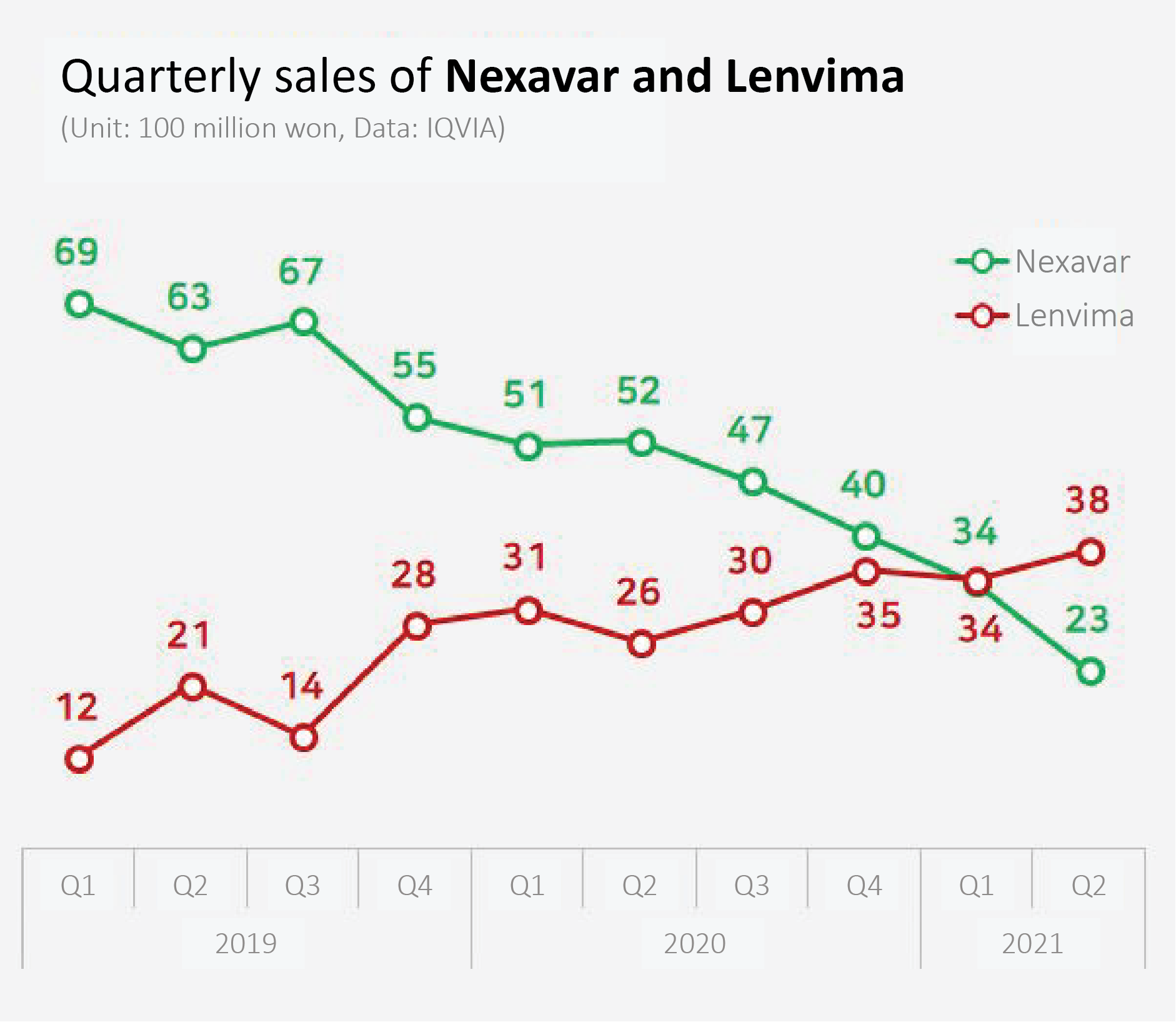 In the same period, sales of Eisai’s Lenvima increased 27% from 5.7 billion won to 7.2 billion won.