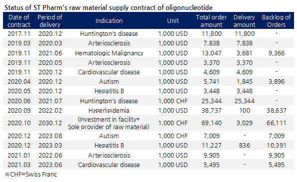 With the addition, ST Pharm’s total contract for oligonucleotide has increased to ₩270 billion, which is more than twofold the sales made by the company last year.