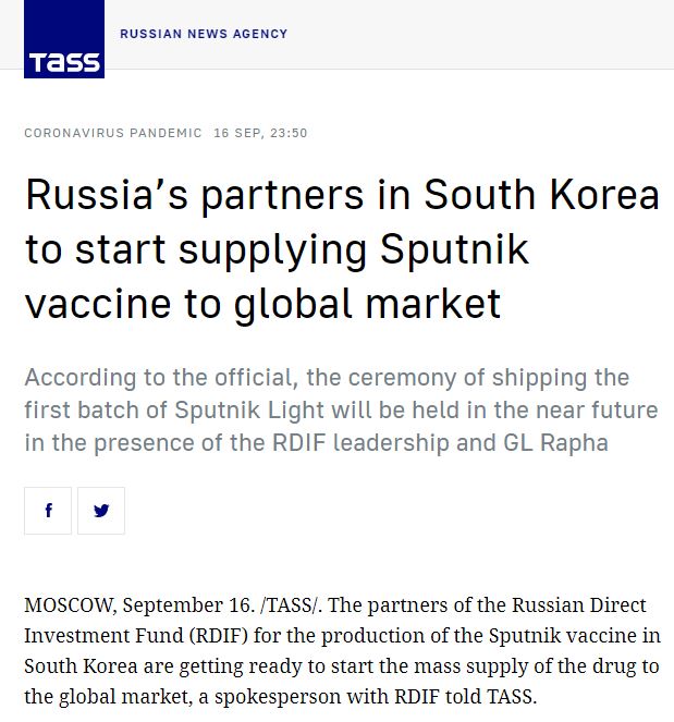 Russian news agency TASS reported on the 16th (local time) that GL Rafa will ship Sputnik Light in the near future, and RDIF is planning a commemorative event related to this.