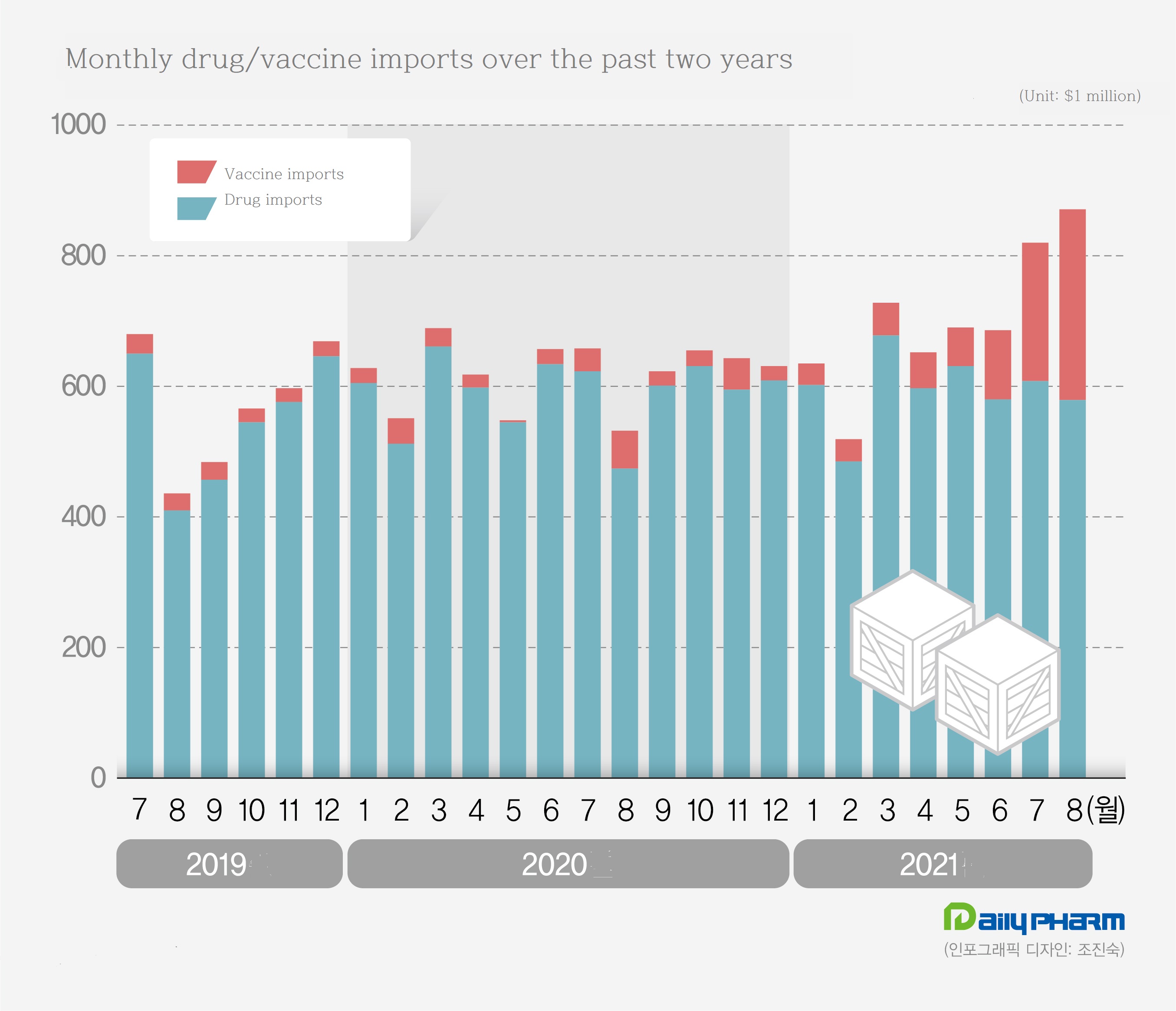 In August, pharmaceutical imports surpassed ₩1 trillion for the first time.