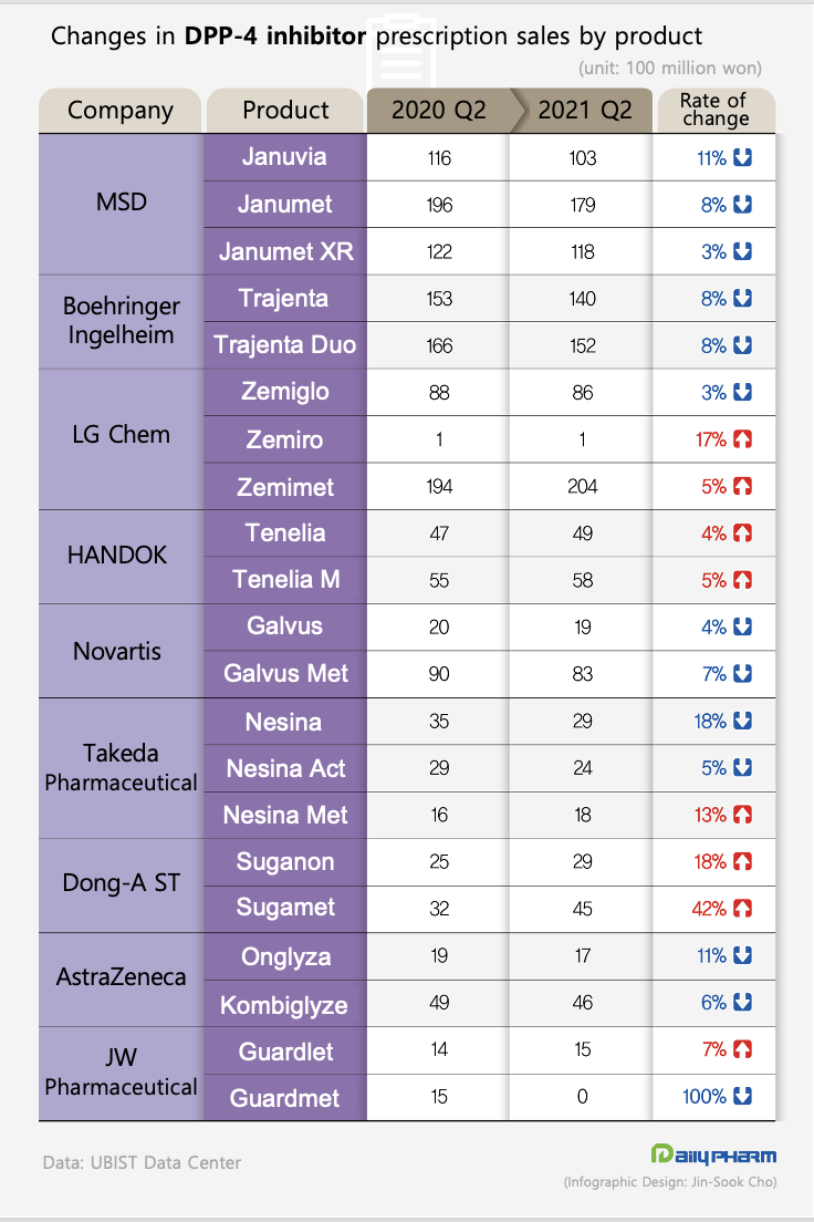 Sales of LG Chem's 'Zemiglo (ingredient name: gemigliptin)' series, which had ranked third in the market, increased by 2% from 28.4 billion won to 29.1 billion won in a single year.