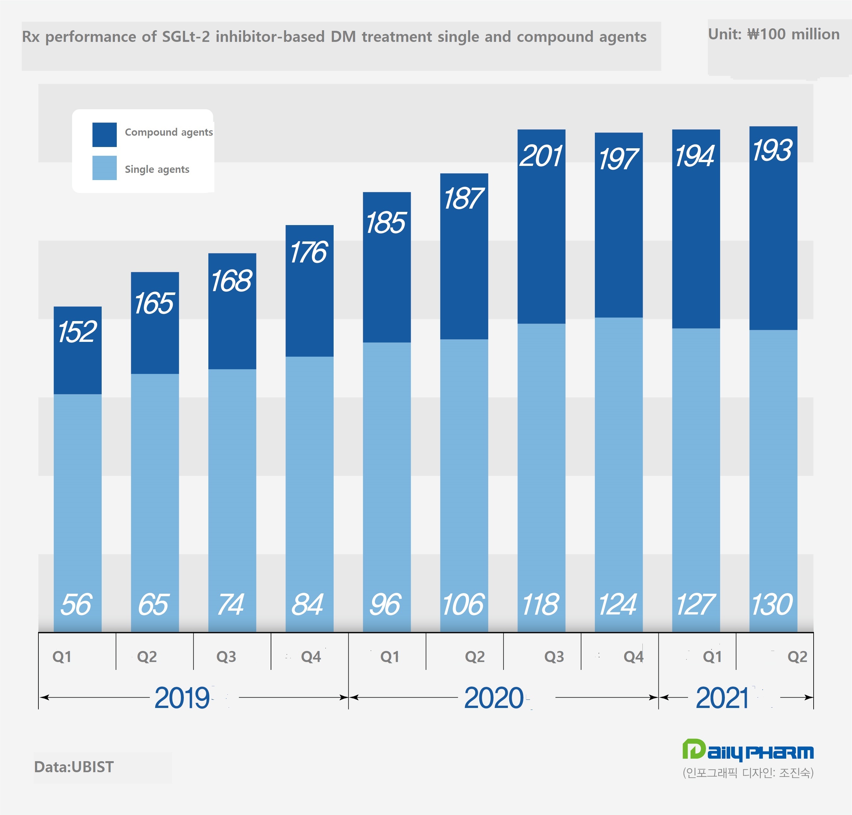According to UBIST, a pharmaceutical market research agency on the 23rd, the total amount of outpatient prescriptions for diabetes treatments related to SGLT-2 inhibitors in the second quarter is estimated at ₩32.2 billion.