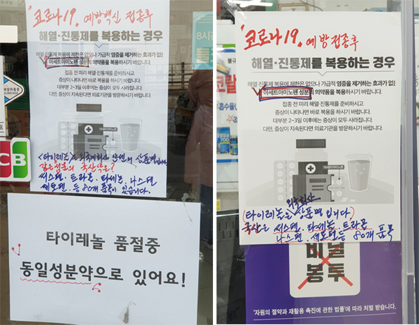 The Korean Pharmaceutical Association and the MFDS urgently produced posters and distributed them to pharmacies about the ridiculous situation of trying to buy only Tylenol at pharmacies despite the presence of a number of Acetaminophenes.