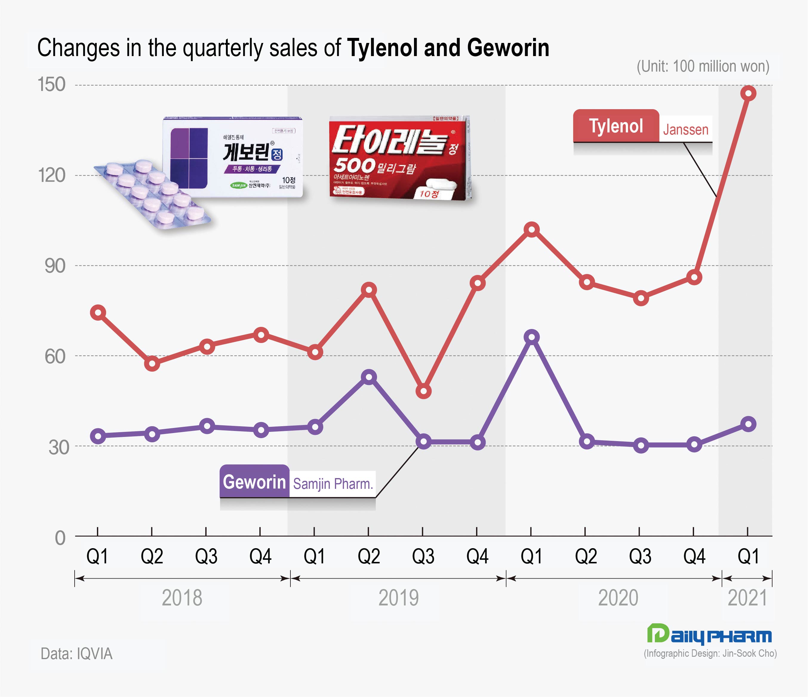 ◆₩10.2 billion → ₩14.7 billion in one year… Tylenol makes new quarterly sales record According to the market research firm IQVIA, Tylenol sales recorded ₩14.7 billion in Q1 this year.