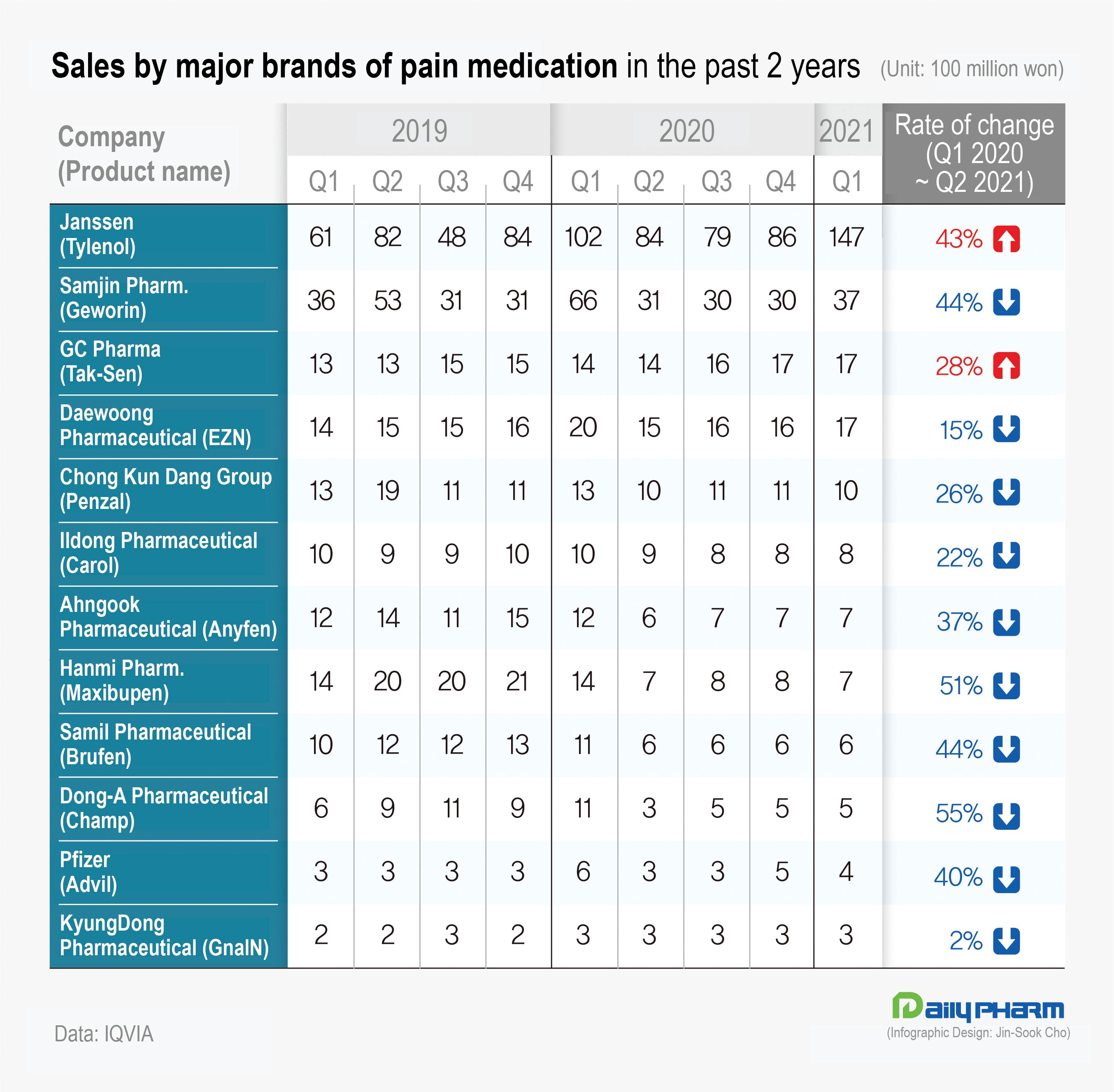 GC Pharma’s Taxen was the only major analgesic other than Tylenol to see an increase in sales.