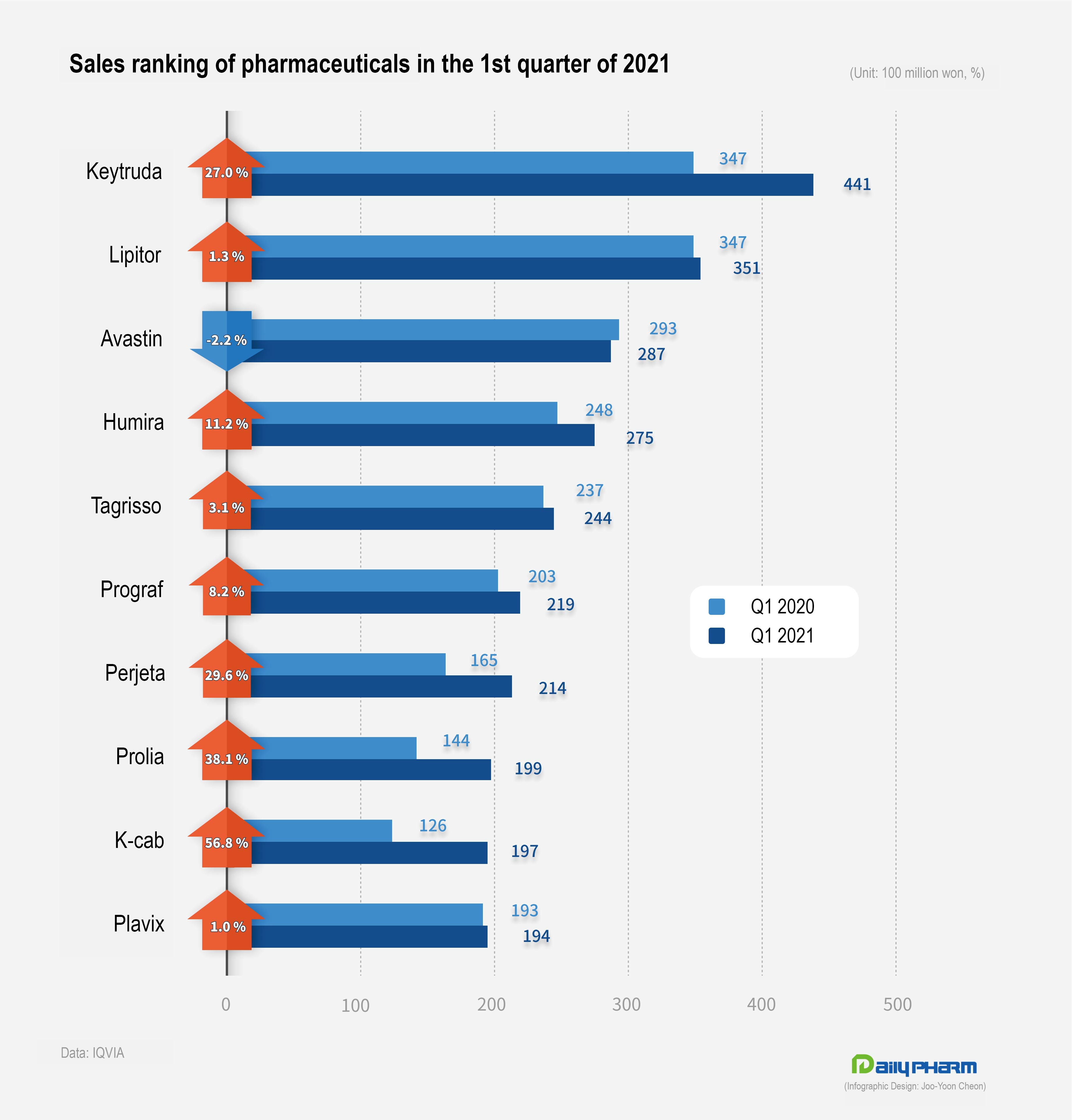 The cancer immunotherapy ‘Keytruda’ firmly held its lead in the domestic pharmaceutical market.